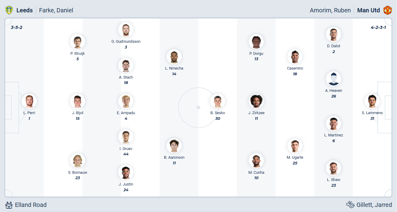 Man United sau khi thắng 3 trận liên tiếp thì đã trở lại với hình ảnh bất ổn, họ lại liên tục để mất điểm và hiện tụt xuống vị trí thứ 6 trên bảng xếp hạng. Sau khi để đội cuối bảng Wolves cầm hòa ở vòng đấu trước, đội bóng của HLV Ruben Amorim cần một chiến thắng để bám đuổi các đội xếp trên. Tuy nhiên chuyến làm khách trên sân của một Leeds đang chơi rất ổn thời gian gần đây được đánh giá không hề dễ dàng. Nhiều khả năng việc muốn có chiến thắng sẽ khiến Man United ra về mà không có điểm nào.